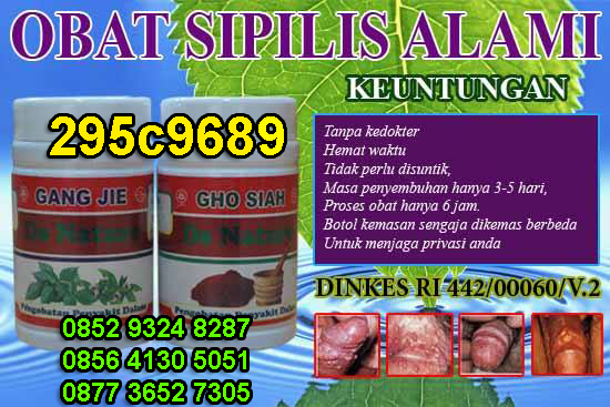 Obat sipilis ini bernama gang jie gho shiah de nature indonesia yang terbuat dari bahan herbal dan alhamdulilah ampuh untuk mengatasi penyakit kencing nanah atau penyakit gonore, selain untuk pengobatan penyakit kencing nanah obat gang jie gho shiah kami ini juga bisa menjadi obat sipilis baik pada pria atau wanita. Hubungi kami Di : 0852 9324 8287 - 0877 3652 7305 - 0856 4130 5051